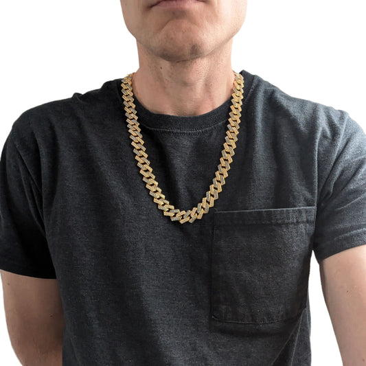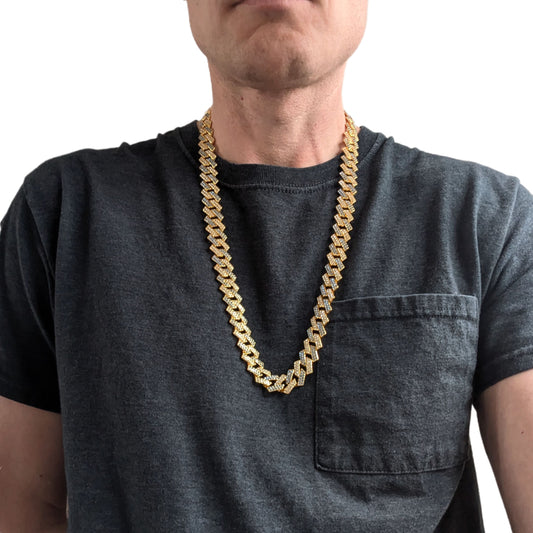 20 INCH - Gold & Blue 14mm Tilted Gem Link Chain Necklace