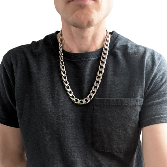 • 23.5 INCH - Silver 15mm Stainless Steel Link Chain Necklace