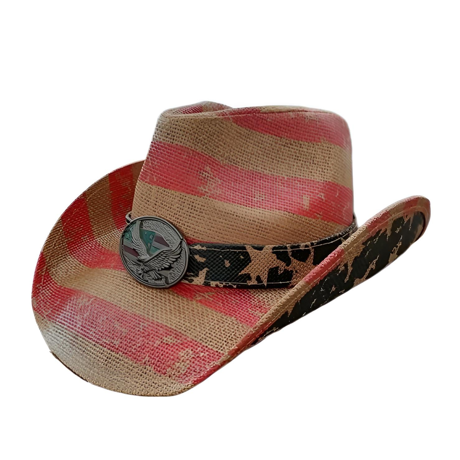 STRAW COWBOY HAT Men & Woman Adult Size - American Flag with Eagle
